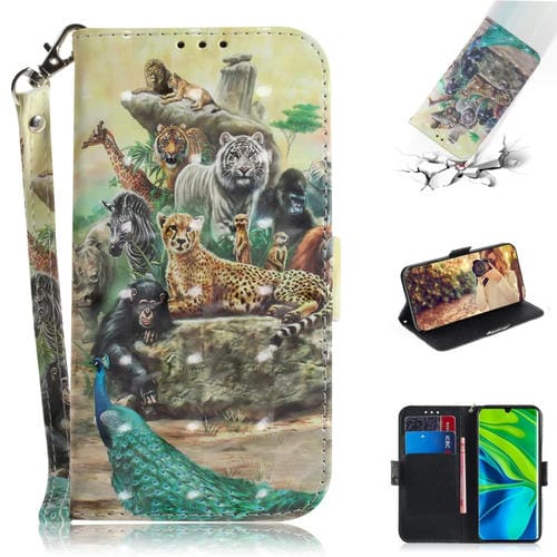 Para Xiaomi Mi Note10 Pro 3D Painting Funda de Cuero con Tapa Horizontal con Soporte y Ranura para Tarjeta y Billetera y Cordón (Zoo)