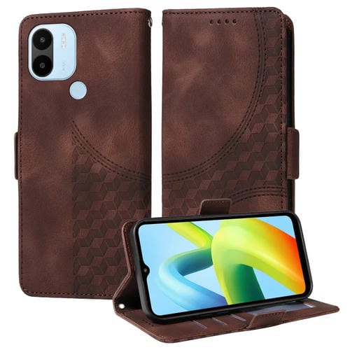 Para Xiaomi Poco C50 / C51 Funda para Teléfono de Cuero Estrellado con Rombos En Relieve (Marrón)