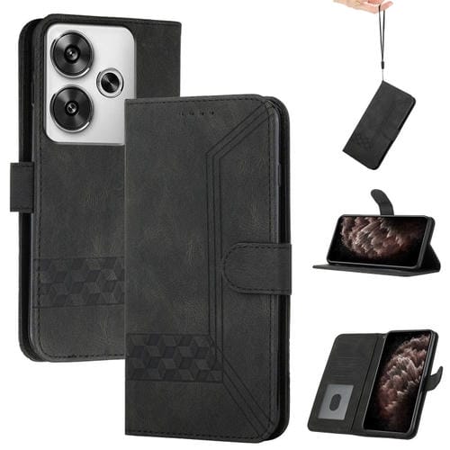 Para Xiaomi Poco F6 / Redmi Turbo 3 Cubic Skin Feel Funda de Cuero con Tapa para Teléfono (Negro)