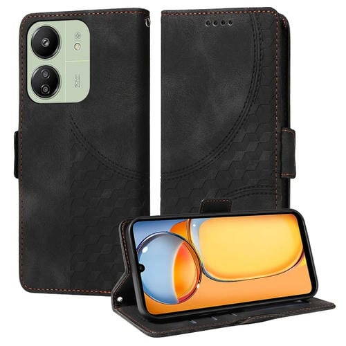 Para Xiaomi Poco M6 / C65 Funda para Teléfono de Cuero Estrellado con Rombos En Relieve (Negro)