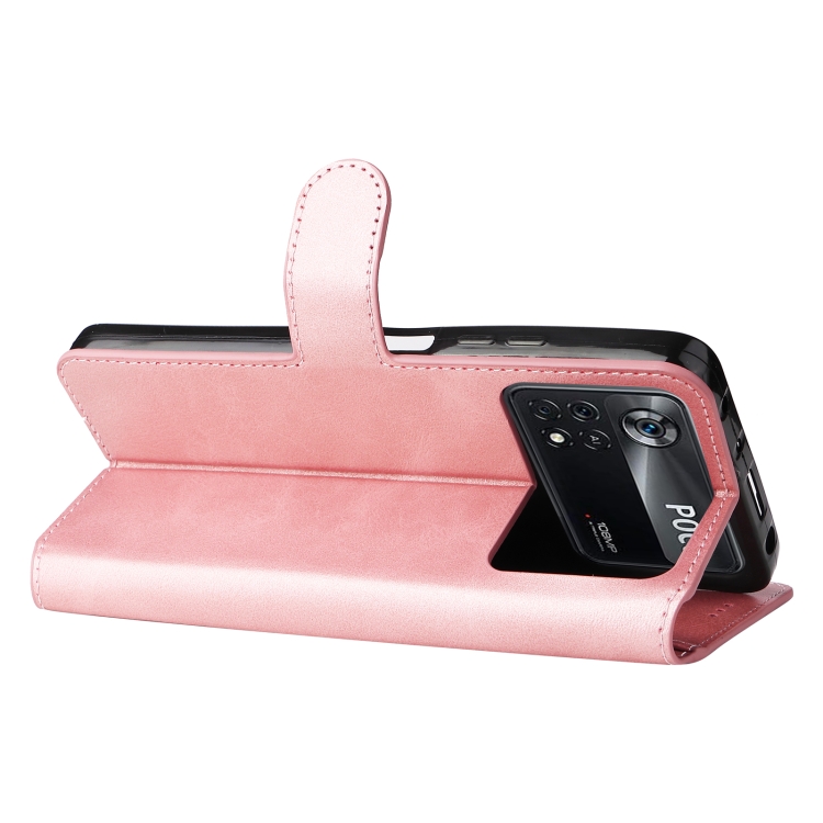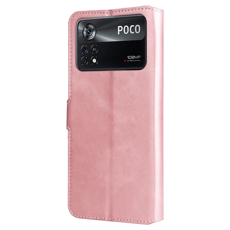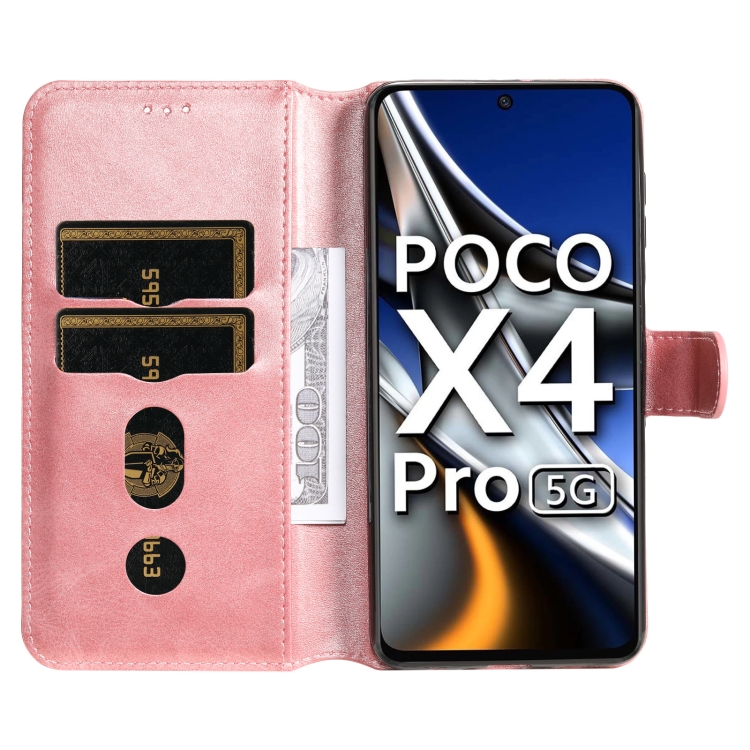 Para Xiaomi POCO X4 PRO 5G Classic Becerta Textura PU + TPU Caja de cuero Horizontal Flip Funda (oro rosa)