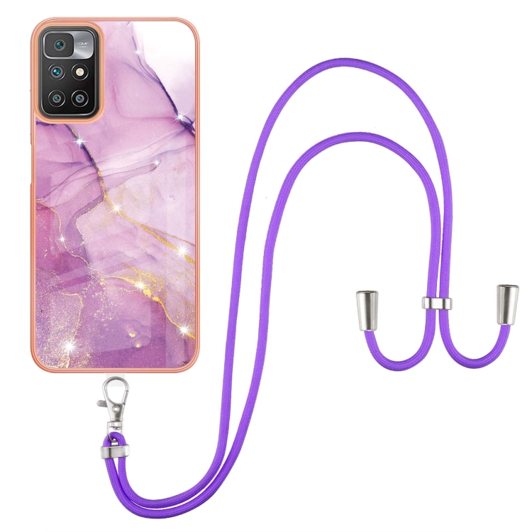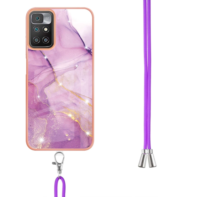 Para Xiaomi Redmi 10 Electrochaplating Mármol Imd TPU Funda Telefónica con Cordón (Púrpura 001)