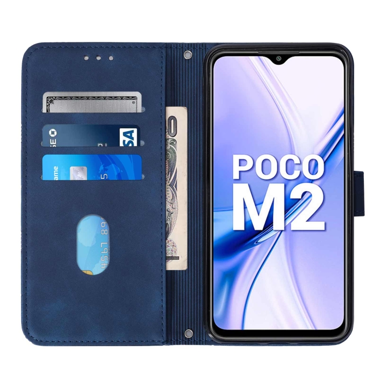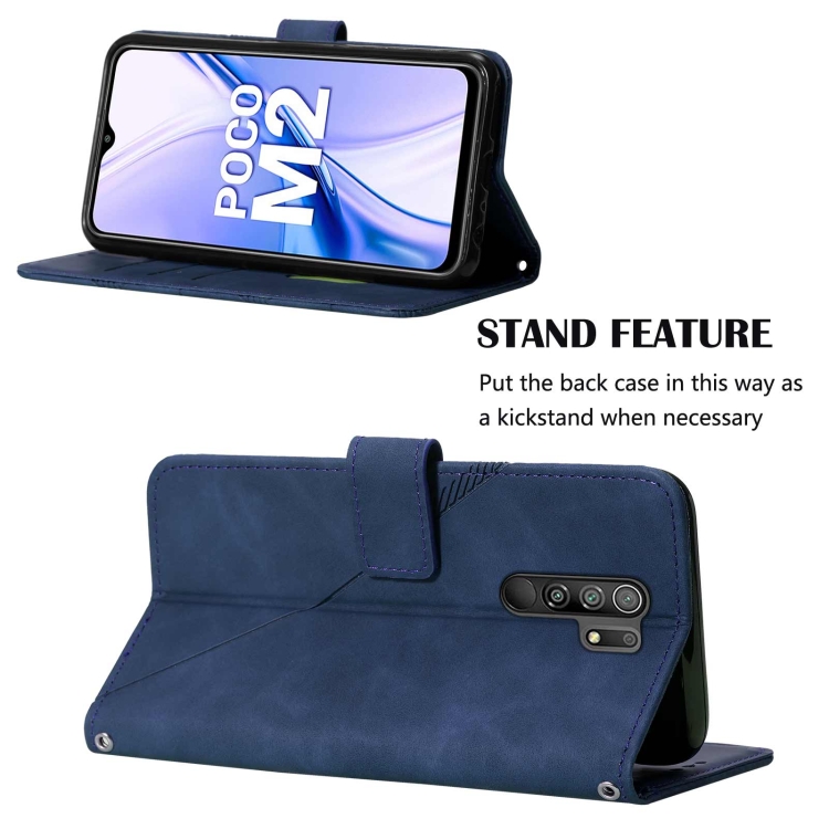 Para Xiaomi Redmi 9/9 POWER / POCO M2 Crossbody 3D Funda de cuero con goma en relieve (azul)