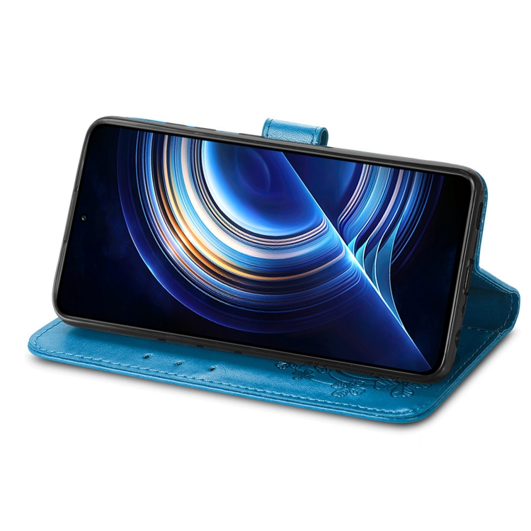Para Xiaomi Redmi K50 Pro Clasp de cuatro hojas Caso de cuero con hebilla en relieve (azul)