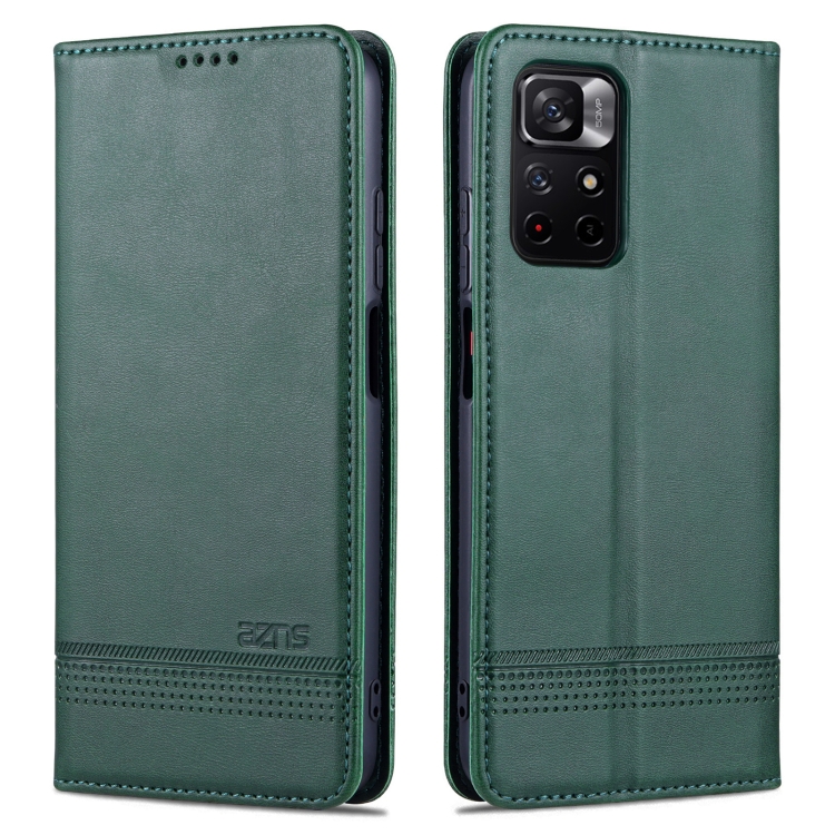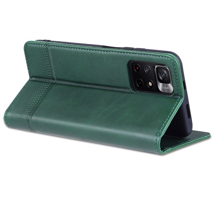Para Xiaomi Redmi Note 11 Azns Magnético Texture Texture Horizontal Flip Tele Funda con Las Ranuras y El Soporte y la Cartera (Verde Oscuro)