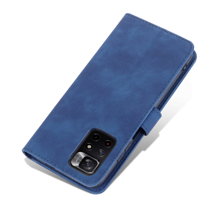 Para Xiaomi Redmi Note 11 / Poco M4 Pro 5G Azns Siente la Piel de la Piel de la Piel de la Piel de la Piel de la Piel de la Carne de Cuero con Las Tragamonedas y El Soporte y la Cartera (Azul)