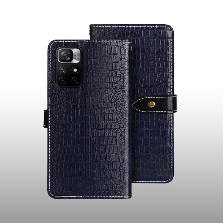 Para Xiaomi Redmi Note 11 Pro Idewei Cocodrilo Textura Horizontal Flip Funda de Cuero (Azul Oscuro)