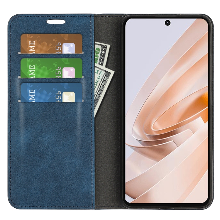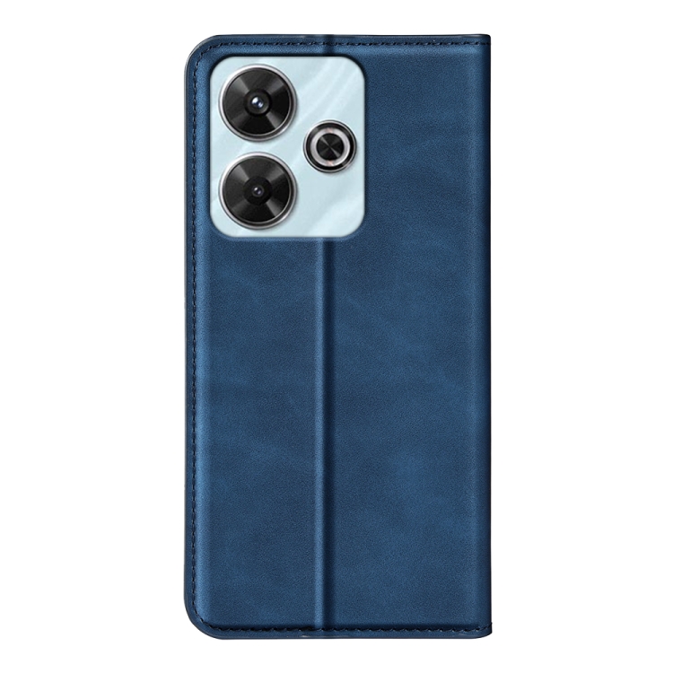Para Xiaomi Redmi Note 13R Funda para Teléfono de Cuero con Succión Magnética de Piel Retro (Azul Oscuro)