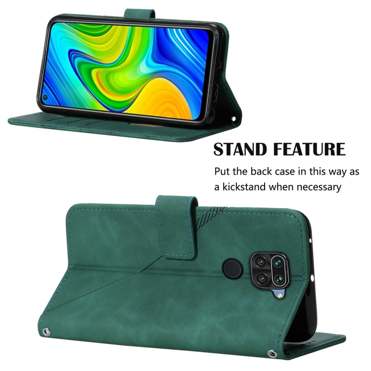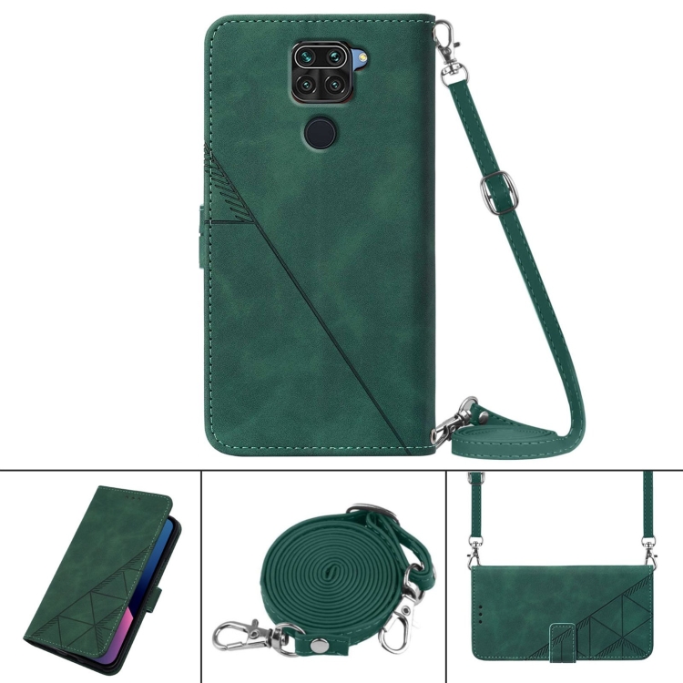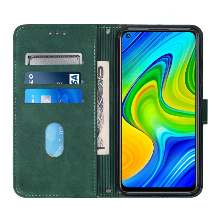 Para Xiaomi Redmi Note 9 Cross Clebody 3D grabado en relieve Funda telefónica de cuero (verde oscuro)