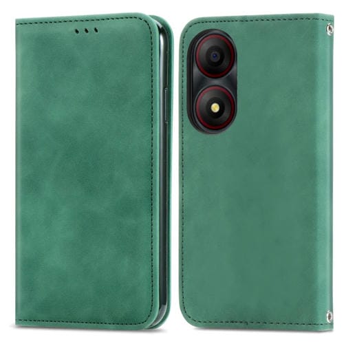 Funda de Cuero con Tapa Magnética para ZTE Blade A34 Retro Skin Feel (Verde)