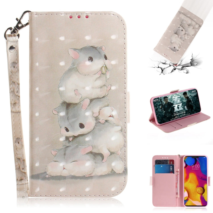Funda de Cuero con Tapa Horizontal LG V40 Thinq Patrón 3D Dibujo a Color Soporte Ranuras y Billetera (Tres Ardillas)