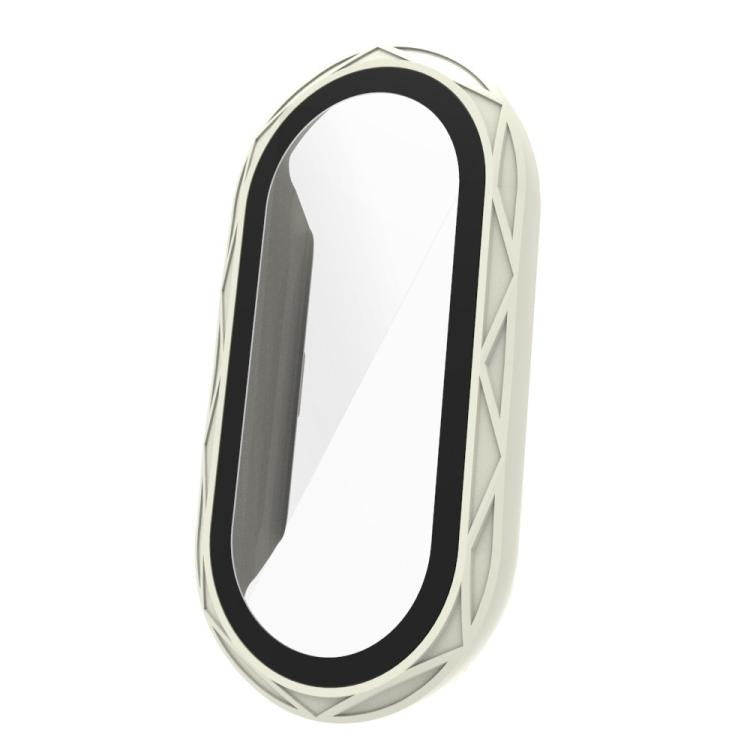 Película de vidrio templado con textura de nido de pájaro para Xiaomi Smart Band 9/9/8 NFC, funda de PC integrada (blanco marfil)