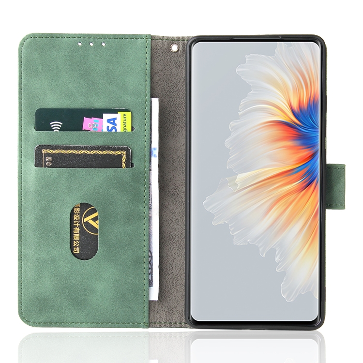 Piel de color sólido Sienta la hebilla magnética Caja de cuero de la textura de la textura de la textura de la carne de la carne con el soporte y las tragamonedas de las tarjetas y la cartera para la mezcla de Xiaomi 4 (verde)