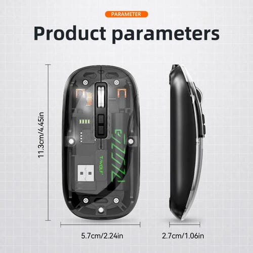1. Este ratón inalámbrico transparente de modo dual combina un diseño vanguardista con versatilidad, compatible con conectividad 2.4G y Bluetooth de modo dual para una compatibilidad con múltiples dispositivos.