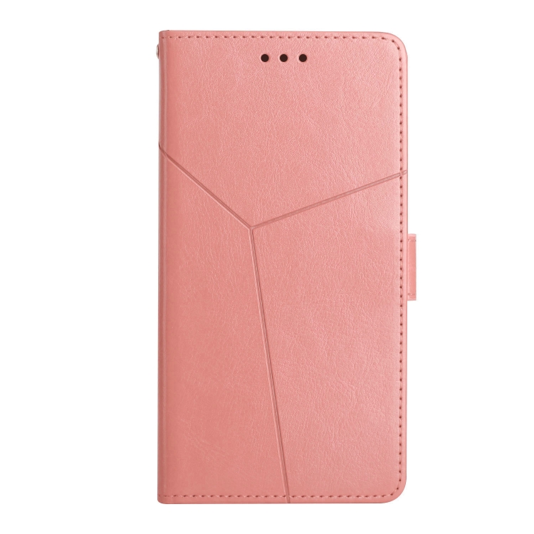 Caja de teléfono cuero Y Costura tapa horizontal soporte ranuras tarjetas marco billetera fotografías iPhone 13 Mini (Oro Rosa)