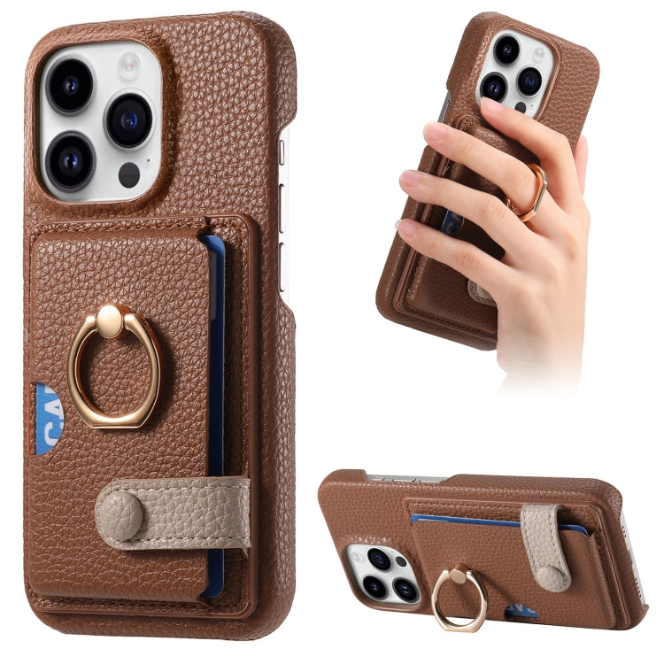 Funda para Teléfono iPhone 13 Pro Litchi Leather Oil Edge Ring Card Back (Marrón)