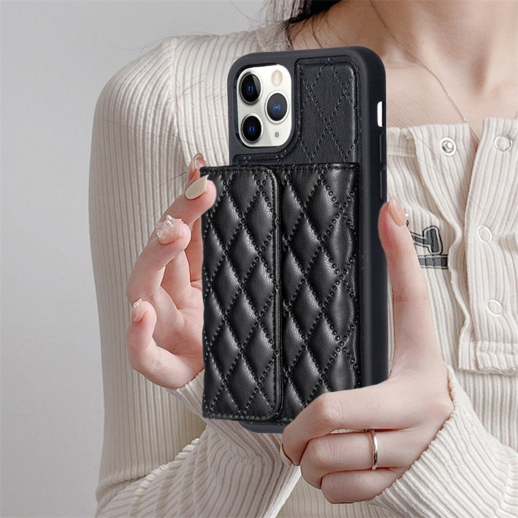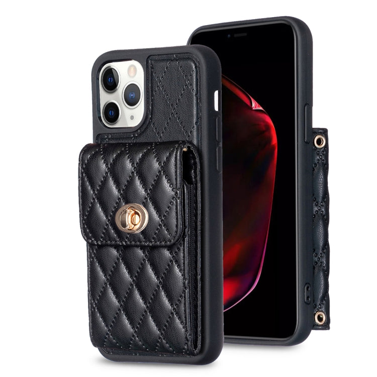 For iPhone 11 Pro Vertical Metal Buckle Wallet Rhombus Leather Phone Case(Black)