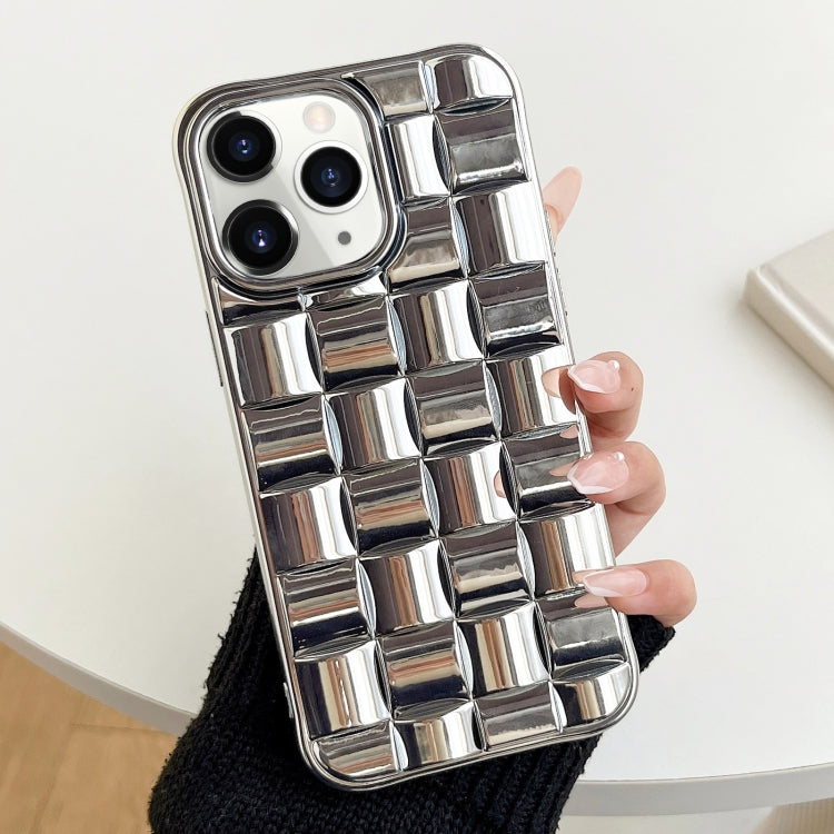 Caja del Teléfono para iPhone 11 3D Cube Weave Textura Galvanoplastia (Plata)