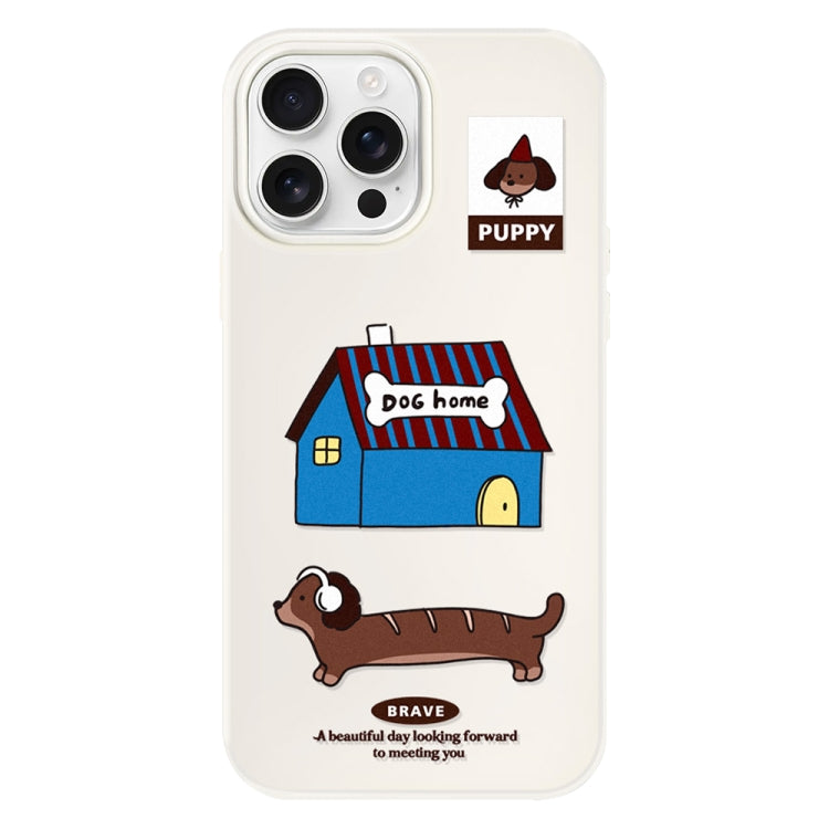 Funda híbrida TPU y Policarbonato iPhone 16 Pro Dibujo Cachorro Crayones (Amarillo)