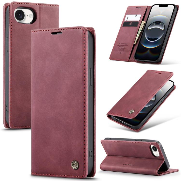 Funda de Cuero Caseme 013 para iPhone 16E con Tapa Horizontal Multifuncional (Roja)