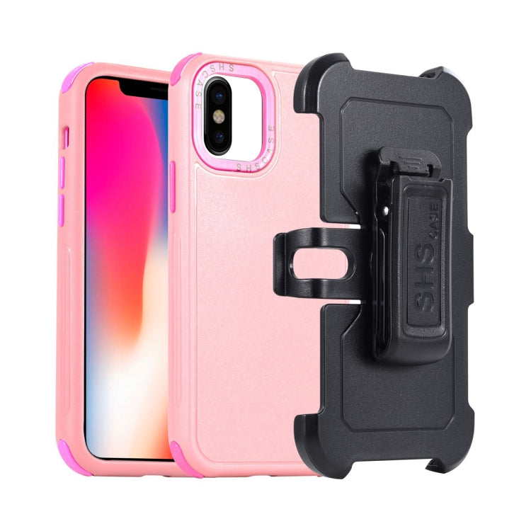 Funda para Teléfono iPhone X Xs 3 en 1 PC y TPU Funda Deslizante (Rosa + Rojo Rosa)