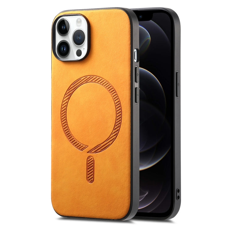 Funda para Teléfono iPhone 12 Pro Max Retro Magsafe Pu con Contraportada (Amarillo)