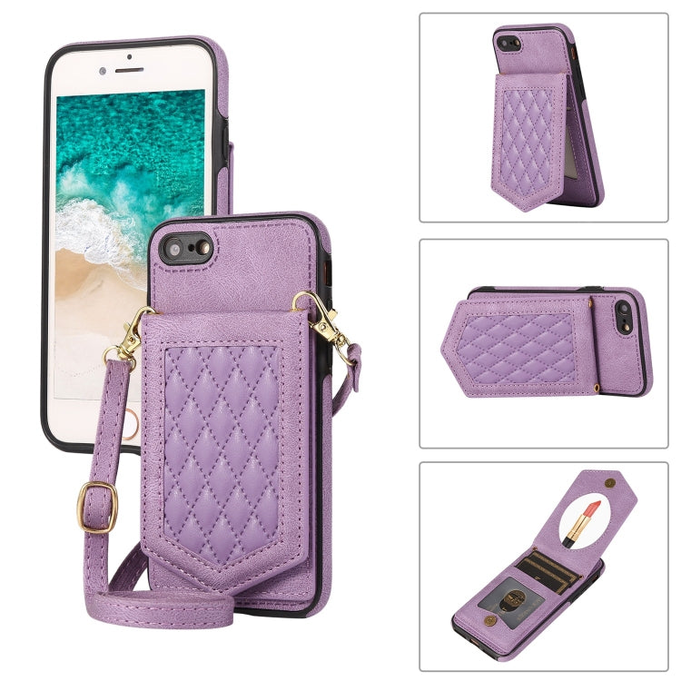 Funda para iPhone 6S / 6 Rhombic Texture Rfid con Cordón y Espejo (Púrpura)