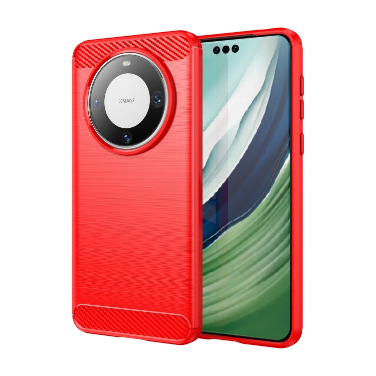 Funda de Teléfono Huawei Mate 60 TPU Fibra de Carbono Textura Cepillada (Rojo)
