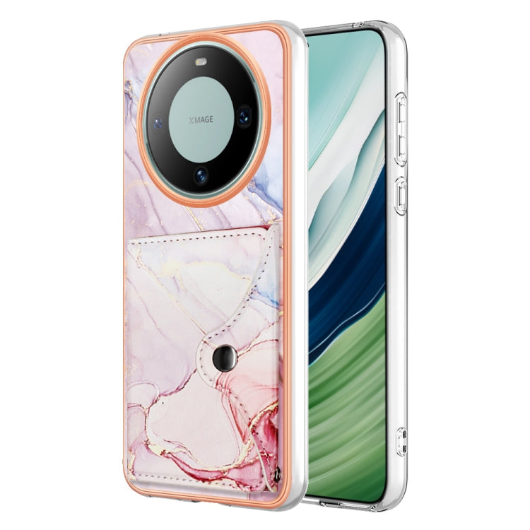 Estuche para Huawei Mate 60 con Ranura para Tarjeta IMD y Patrón Mármol (Oro Rosa)