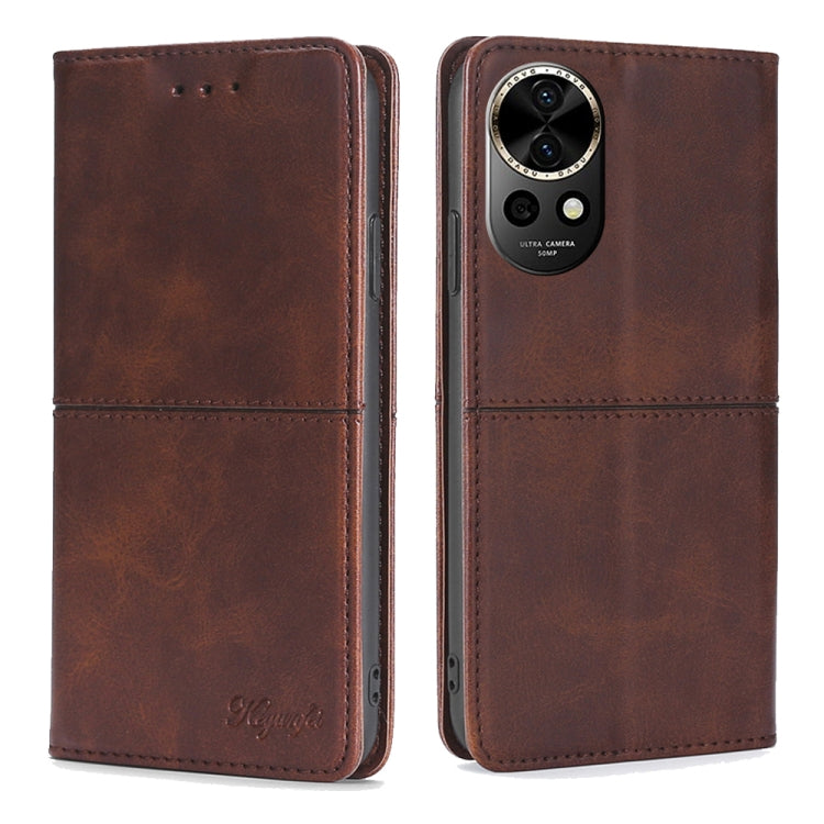Funda para Huawei Nova 12 5G Cuero Magnético Textura de Vaca (Marrón Oscuro)
