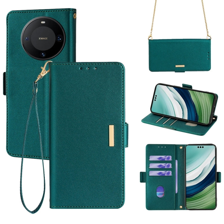 Funda de Cuero para Huawei Mate 60 Pro+ / 60 Pro con Cadena Cruzada (Verde)