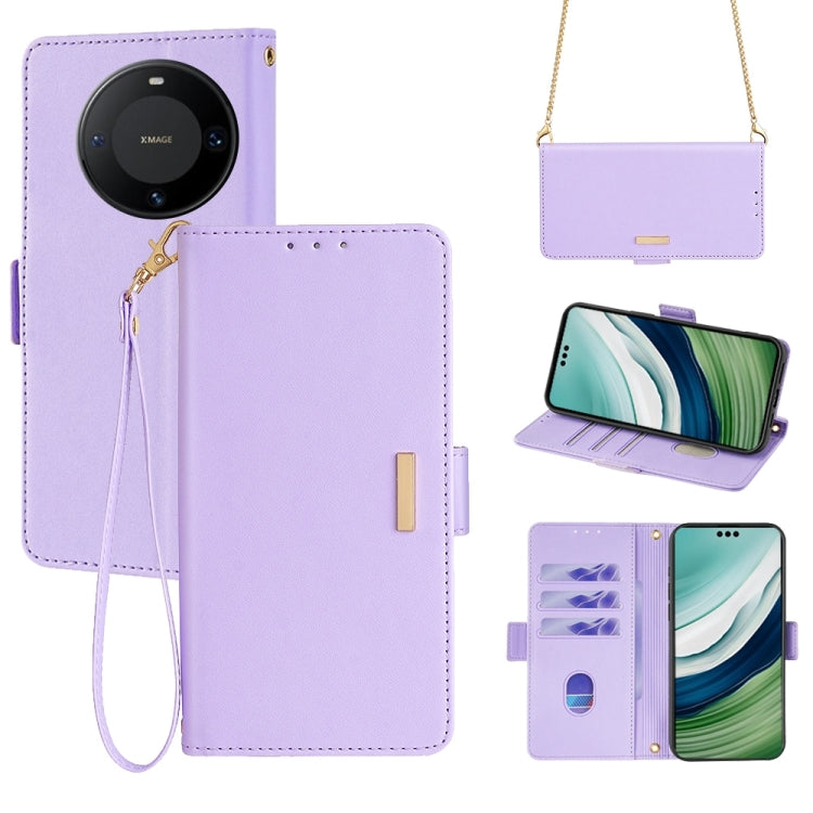 Funda de Cuero para Huawei Mate 60 Pro+ y 60 Pro con Cadena Cruzada (Púrpura)