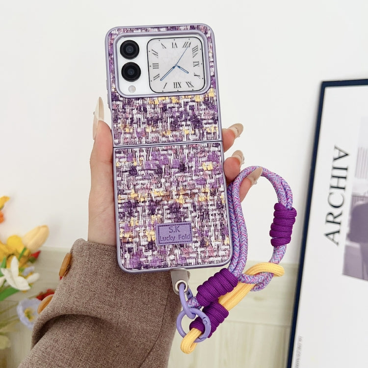 Funda para Teléfono Huawei Nova Flip con Textura de Tejido y Correa (Púrpura)