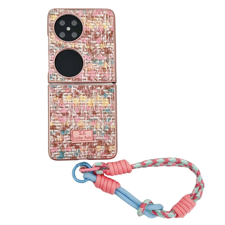 Funda para Teléfono Huawei P50 Pocket con Textura de Tejido y Correa (Rosa)