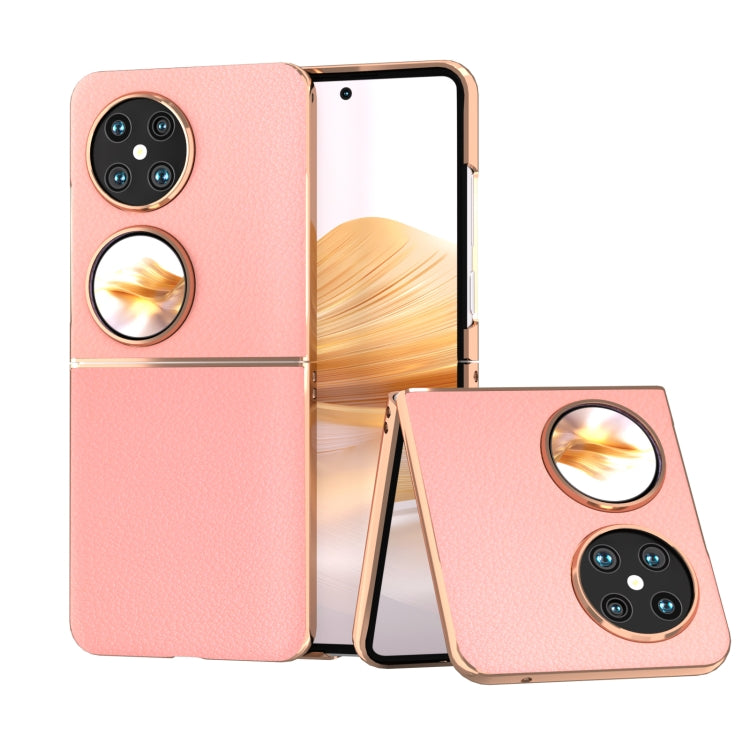 Funda para Huawei Pocket 2 Serie Wave de Cuero Genuino con Nanochapado (Rosa)