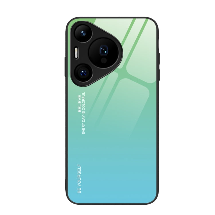 Caja de Teléfono de Vidrio para Huawei Pura 70 Pro Color Degradado (Verde Cian)