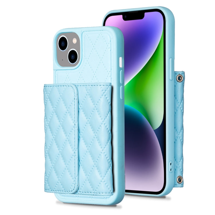 Pour iPhone 14 Étui de téléphone en cuir rhombique à portefeuille horizontal (bleu)
