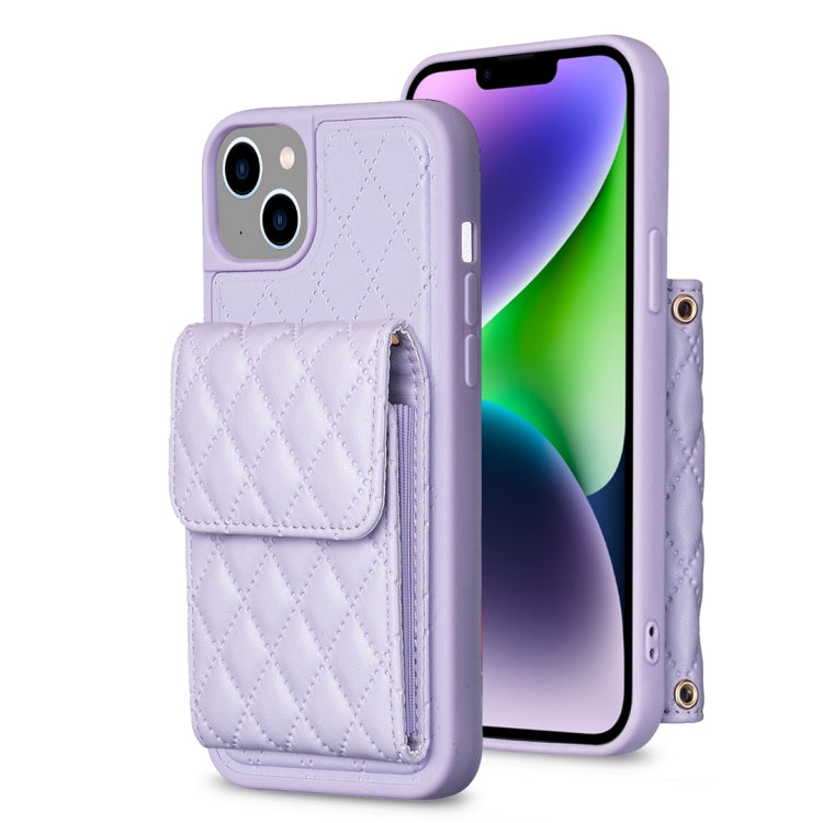 Pour iPhone 14 Étui de téléphone en cuir rhombique à portefeuille vertical (violet)