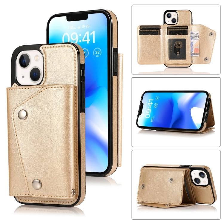 Pour iPhone 14 Emplacements pour cartes Étui de téléphone en cuir PU + TPU (Or)