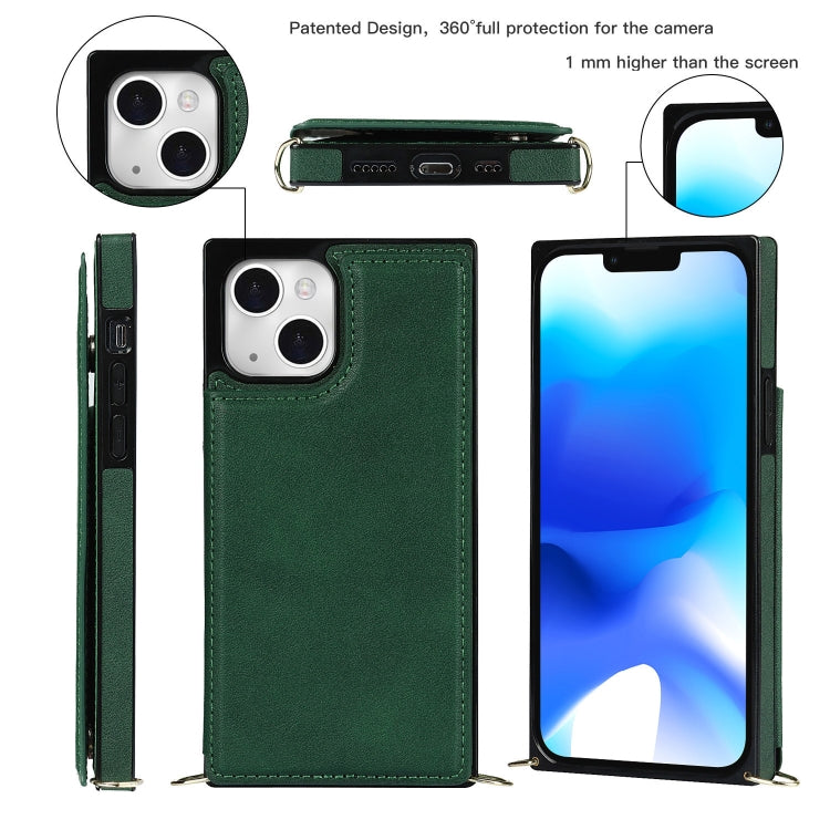 Pour iPhone 14 Cross-body Square Double Boucle Carte Flip Wallet Phone Case (Vert)