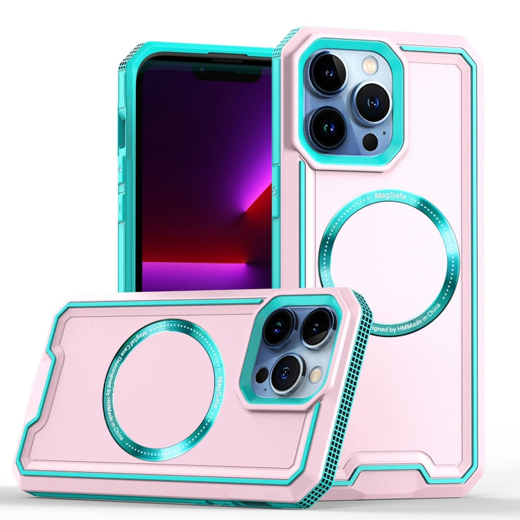 For iPhone 14/13 Armor Two-color MagSafe Magnetic TPU + PC Phone Case (Blue + Pink)