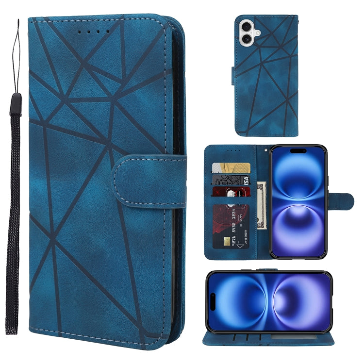 Funda de piel para iPhone 16 con líneas geométricas y tacto agradable (Azul)