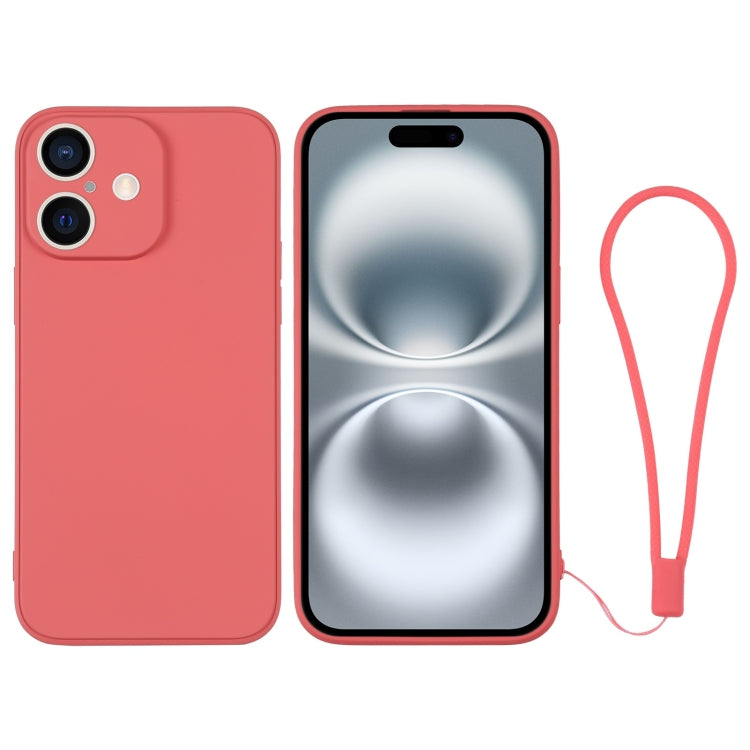 Funda de Silicona para iPhone 16 con Correa para la Muñeca (Naranja y Rojo)
