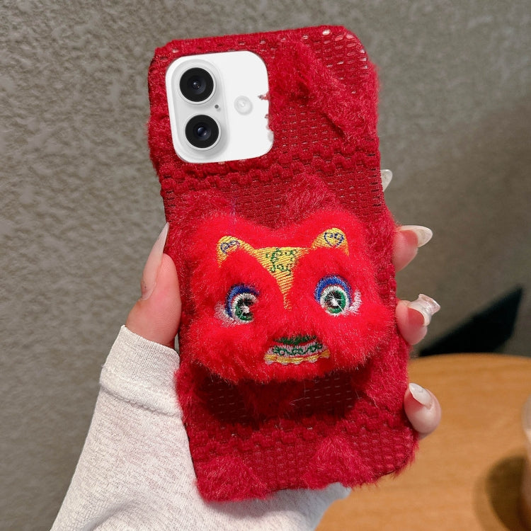 Funda Híbrida Poliuretano Termoplástico iPhone 16 Diseño Muñeco Peluche (Roja)