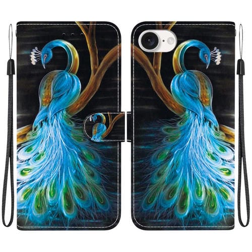 Funda de Cuero iPhone 16E Dibujo de Colores Textura de Cristal (Pavo Real)