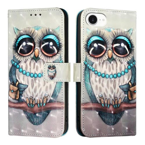 For iPhone SE 2024 3D Painting Horizontal Flip Leather Phone Case (Gray Owl)