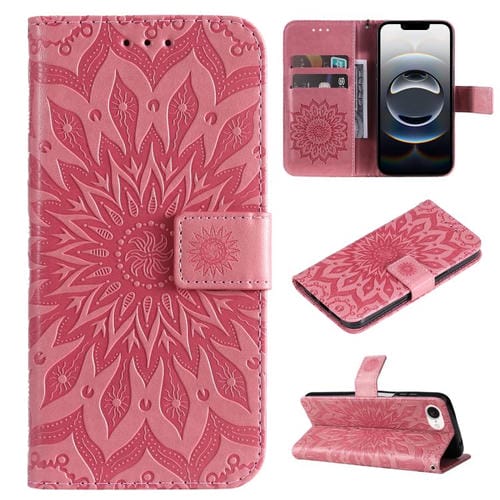 For iPhone SE 2024 Embossed Sunflower Pattern Flip Leather Phone Case (Pink)