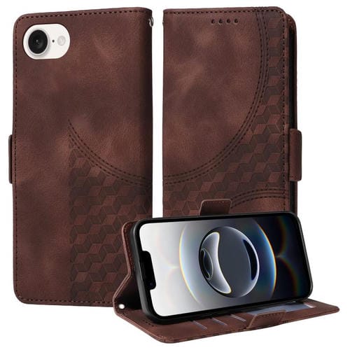 Funda de Cuero para iPhone 16E con Rombos En Relieve y Estrellas (Marrón)