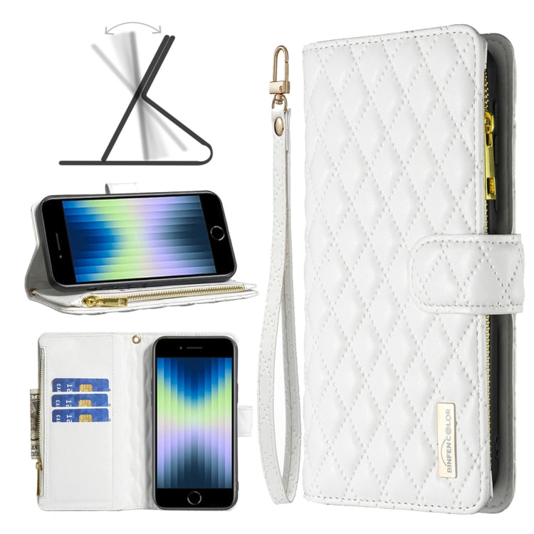 Funda Flip Zipper Wallet de Cuero para iPhone SE 2022 SE 2020 8 7 (Blanco)