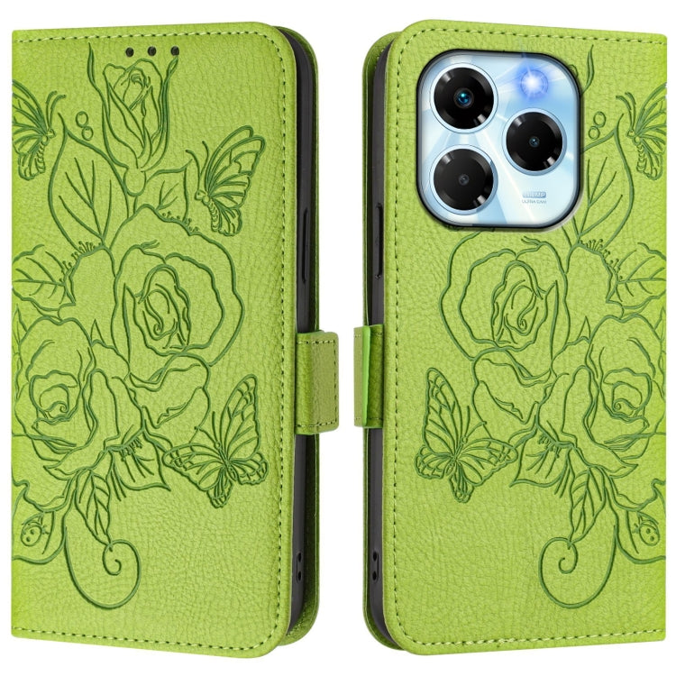 Funda de Cuero con Relieve Mariposa y Rosa para Infinix Hot 50I Smart 9 (Verde)